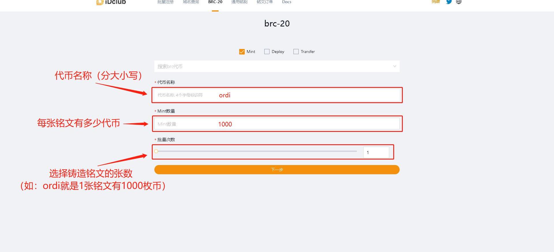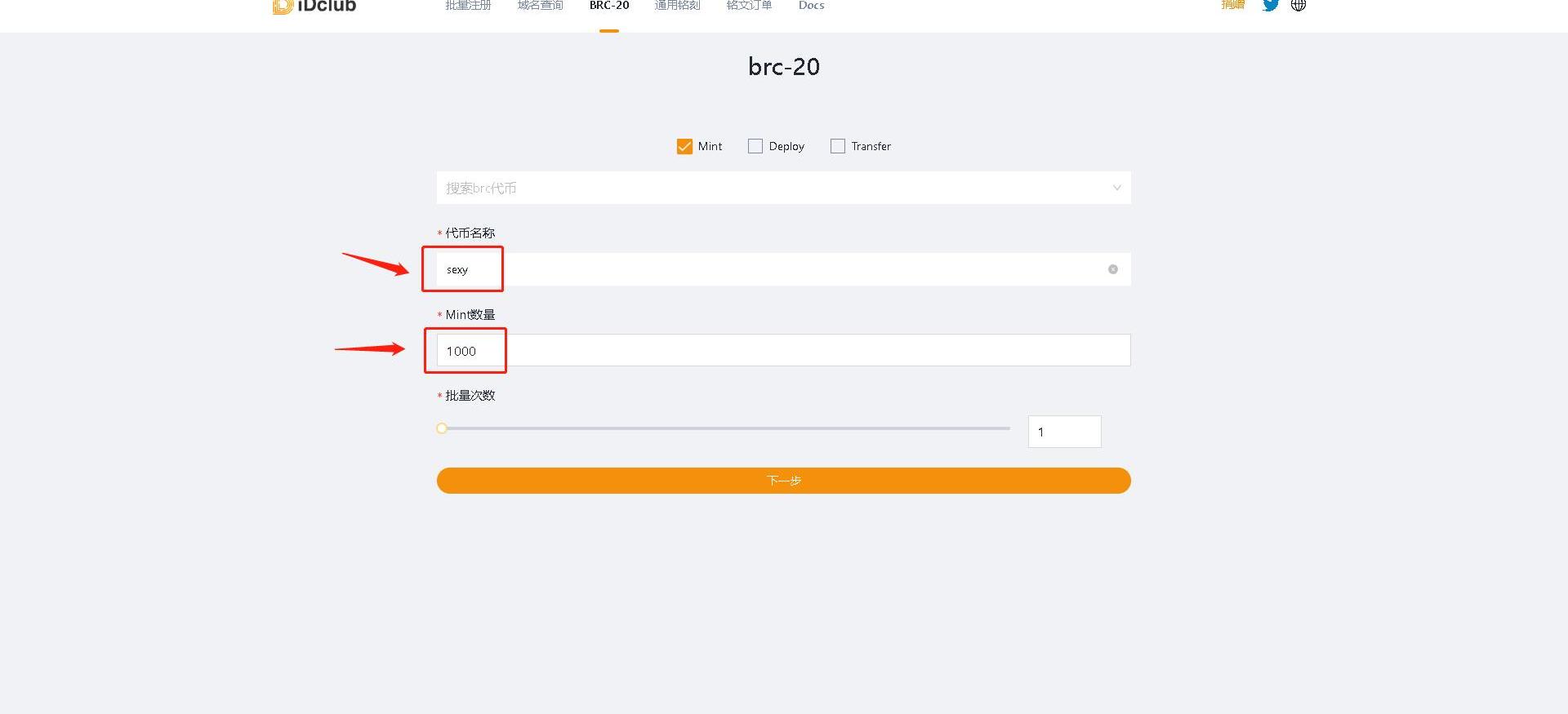 方法二:不用復制UniSat的,直接第一欄直接搜索代幣名稱點擊下可自動填寫我這里選擇鑄造1張為實例。