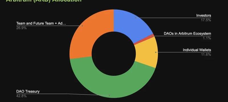 按照空投之時項目方所公布的代幣經濟模型,總量?42.78%?的代幣本應分配給ArbitrumDAO的社區金庫。而按照?AIP-1?,原本屬于社區的?7.5?億枚?ARB?或將被挪用給基金會,并以此建立生態基金。而按照官方的口徑,這一舉措的目的在于“用于支持Arbitrum生態增長的特別捐款計劃”。