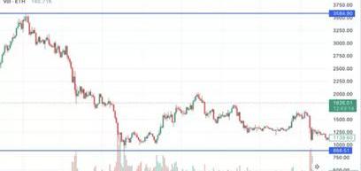2022年5月,由于UST和LUNA崩潰、Celsius破產等事件沖擊了市場,導致ETH在2022年6月從3580美元暴跌至890美元。