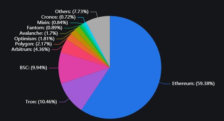 根據?defillama數據,如下圖所示為TVL在各區塊鏈占比,目前龍頭layer協議Arbitrum占比4.36%,Optimism占比1.81%,但新公鏈Aptos占比極小,沒有單獨列出。