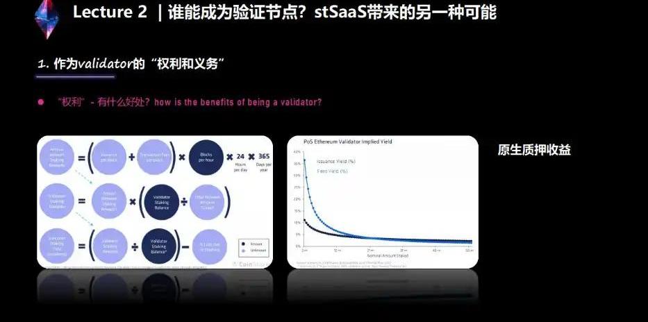 1.數量門檻還是32個ETH;2.你的32個ETH仍然長期處于被鎖定的狀態,無法轉移;第三,你要去分辨平臺的運維能力,因為驗證私鑰是由平臺來控制,你所能夠獲得的收益取決于平臺的運維能力;最后一點是如果你要退出驗證節點服務的話,需要平臺使用它的驗證,簽署退出協議,所以平臺從某種程度上有服務的終止權。