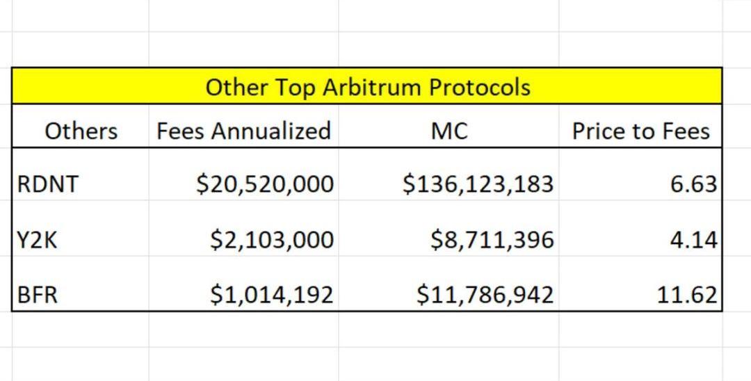 GMX仍然是Arbitrum生態最好的藍籌衍生品協議,其流通市值與手續費年化收入的比值高達4。考慮到GMX即將支持合成資產交易,這顯然會對幣價提供新的利好支持。