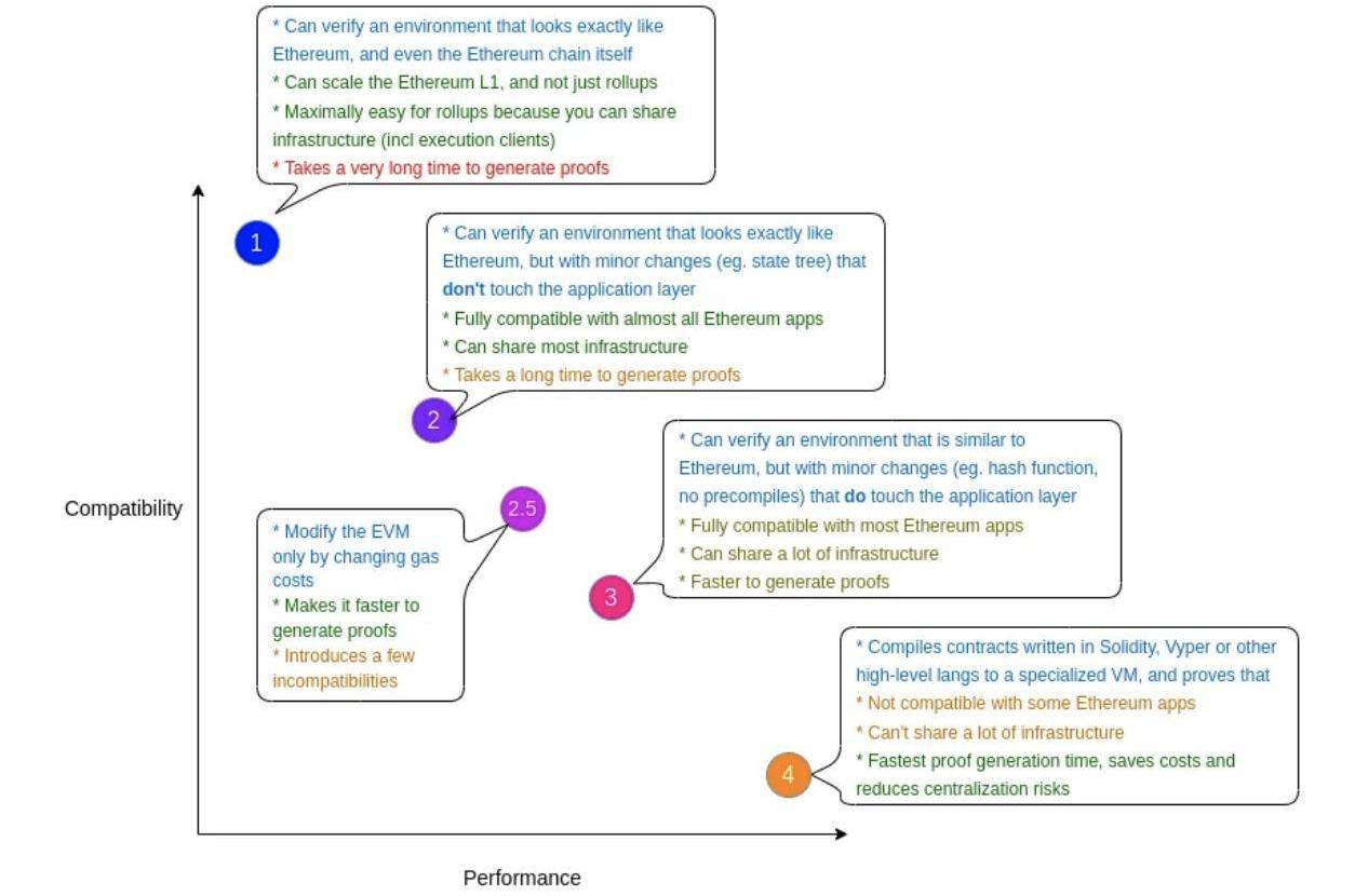 Scroll/PolygonHermez/zkSyncEra在構建ZK-basedL2生態做的努力是將開發和現有協議移植的難度降低到幾乎無痛的水平。在實現完全EVM等效(type2byvitalik)的這個過程里,我們目前在實踐中是處于“幾乎”EVM等效(type3byvitalik)這個進度。例如zkSyncEra就可以使99%的以太坊項目無需重構或重新審計任何一行代碼即可部署。
