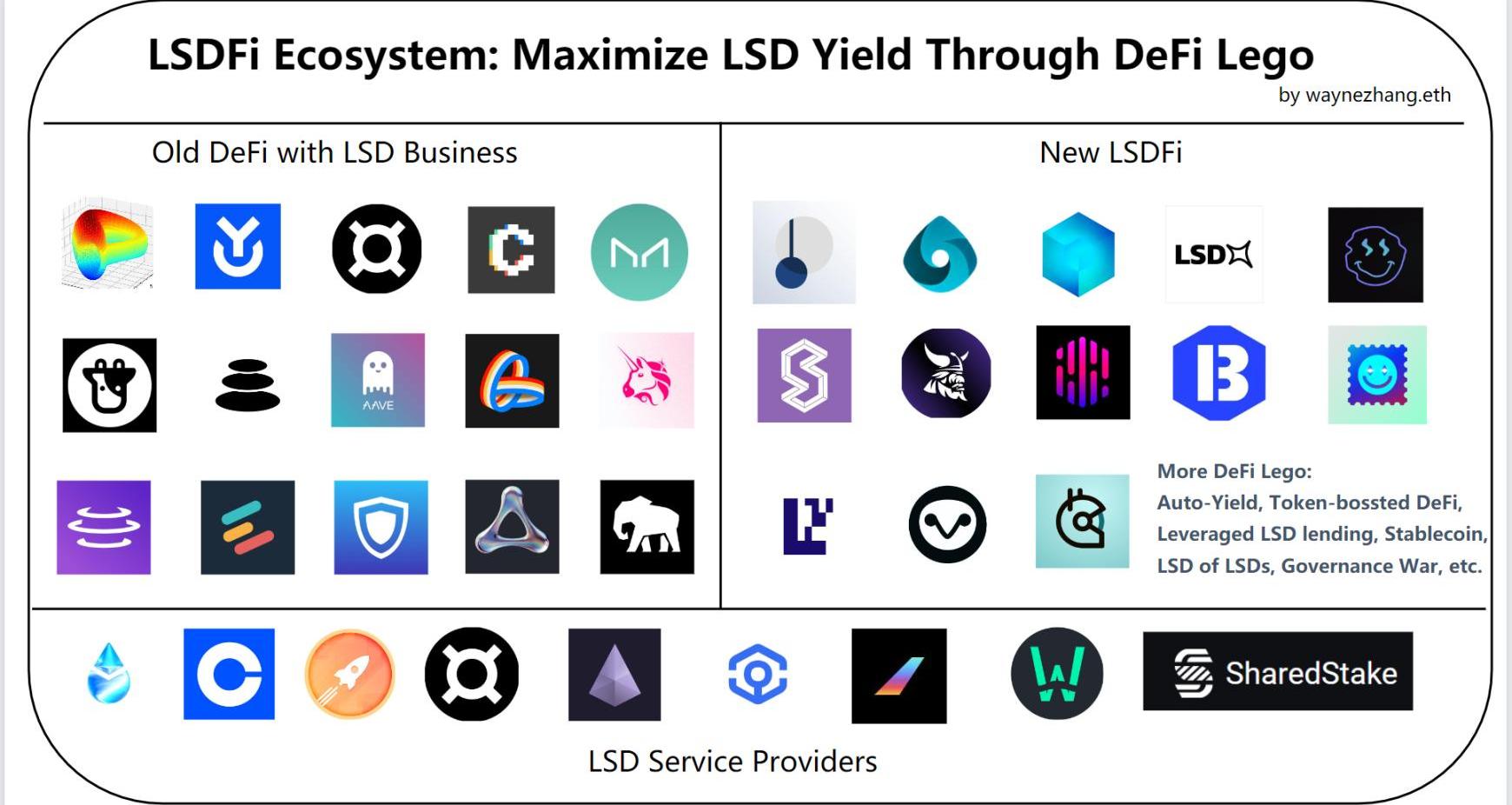 XRP/HKD-1.75%LSDFi是基于LSD的?DeFi?產品,通過LSD,質押者可以將質押的?ETH?轉化為一種可以交易的資產,從而解鎖流動性,且LSD也降低了用戶質押ETH的門檻,任意數量即可質押,并能在質押后獲得LSD,同時可利用LSD帶來多份收益。