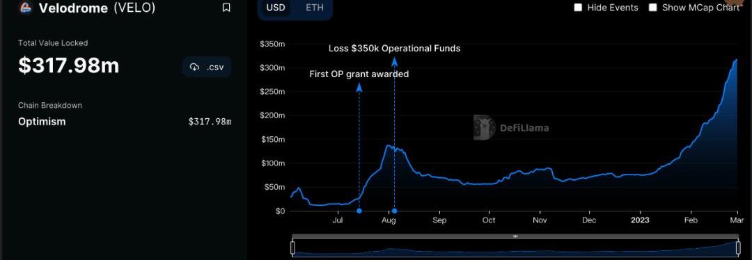 受益于1月的市場復蘇、Layer2賽道火熱,Velodrome的TVL快速增長,從1月1日的0.75億$增長到了目前的3.18億$,今年TVL增幅高達322%;