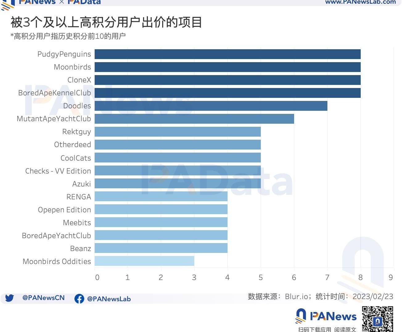 為了觀察?Bidding?機制對不同類別?NFT?的影響,PAData?選取了?Blur?上最近?7?天交易量最高的?10?個項目和最近?1?小時交易量最高的?10?個項目進行觀察。