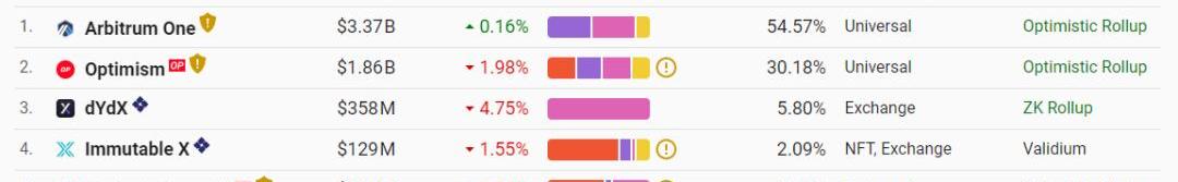 Arb生態和OP生態具備先發優勢,市場關注度高,資金較為集中。形成了Arb+GMX、OP+SNX的生態,競爭將長期存在。