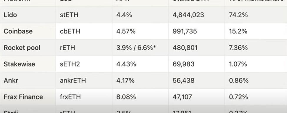 最簡單的方式是到中心化交易所CEX質押,例如Coinbase。而對于不喜CEX的用戶也可以選擇市場上類似Lido.RocketPooL,Stakewise,Ankr,Frax,Stafi等協議參與質押,拼押模式也對于無法湊齊32個ETH的投資者很友好,但需要一定的服務費提供給服務商。
