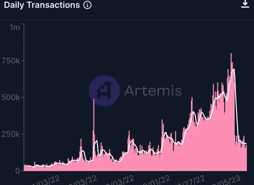現在該計劃已經結束,Optimism的用戶數量似乎正在回到任務前的水平,與2022年第四季度相比,2023年第一季度的交易量將下降7.2%。