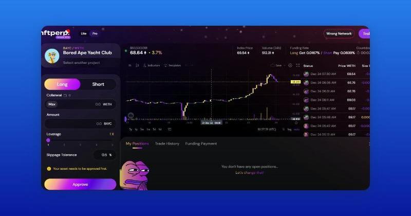 Nftperp?是一個永續NFT期貨交易所,跟蹤NFT收藏品的地板價。交易者可以在地板價上使用任意金額做多或做空項目,如BoredApeYC和?Doodles。