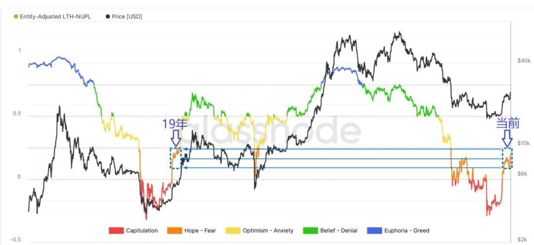 CryptoChan發推表示:簡單刻下2019年,當前小牛中繼,走勢穩定。在隨后幾天其又連續發表一些鏈上數據,從圖表中看BTC仍有上漲空間。