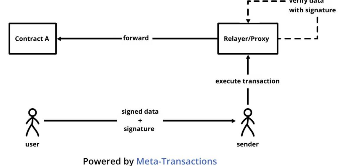 由于交易只能從EOA開始,為了改善用戶體驗,通常智能合約錢包會提供中繼服務,從用戶那里獲取簽名消息并從服務提供商的EOA提交到鏈上,其自定義費用機制可以將ETH退回給用戶的EOA錢包實現免Gas費用。