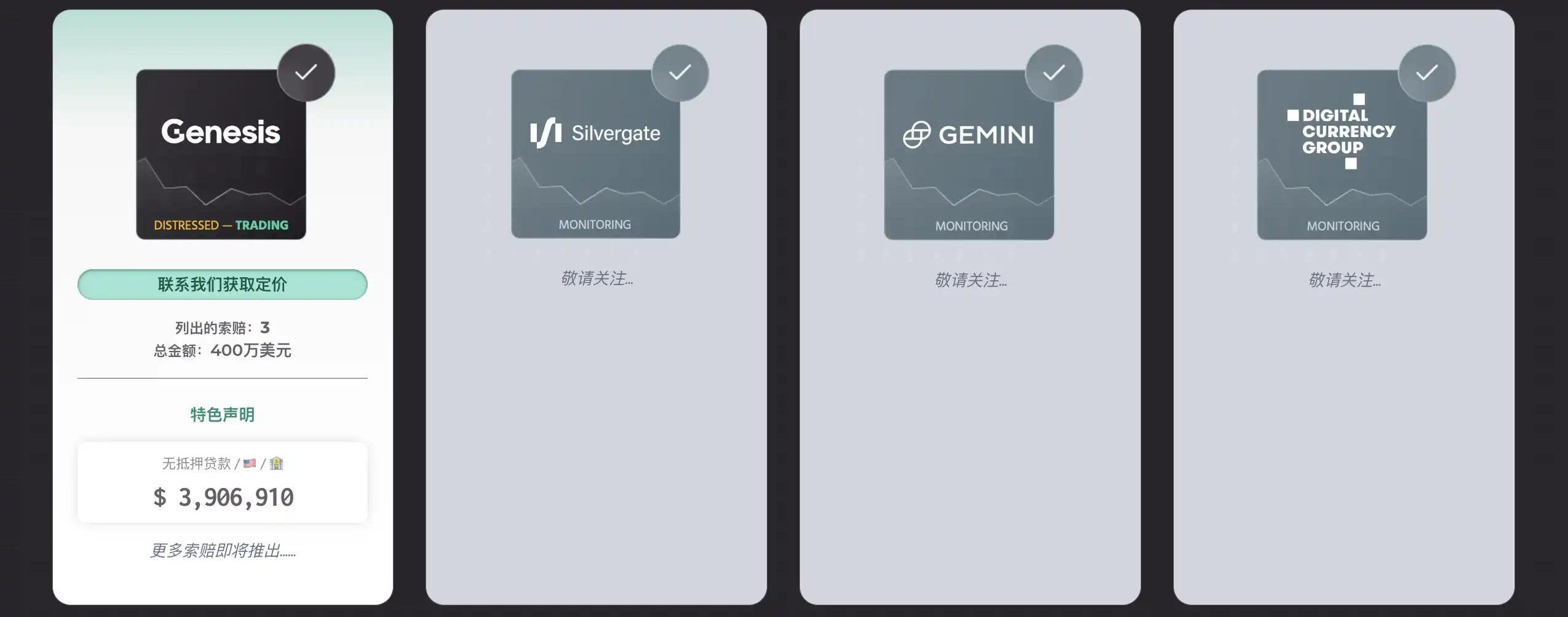 可看到相比只能在Xclaim售賣4個破產平臺的債權,Xclaim購買債權可提供的選擇則要更多,未來還將陸續上線Silvergate、Gemini和DCG等平臺的債權交易。