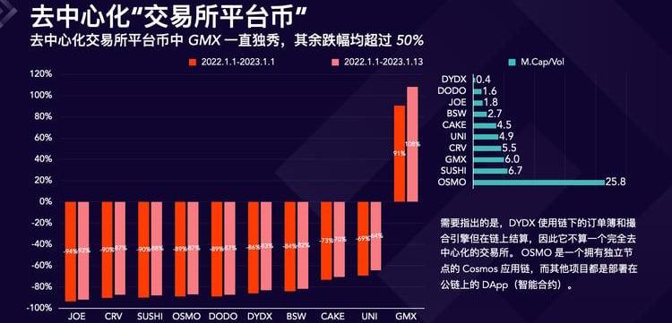 去中心化交易所平臺幣中GMX一直獨秀,其余跌幅均超過50%