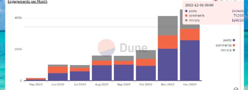 2022年12月,Lens上的帖子數量在一個月內達到25.9萬(每天8.6萬)