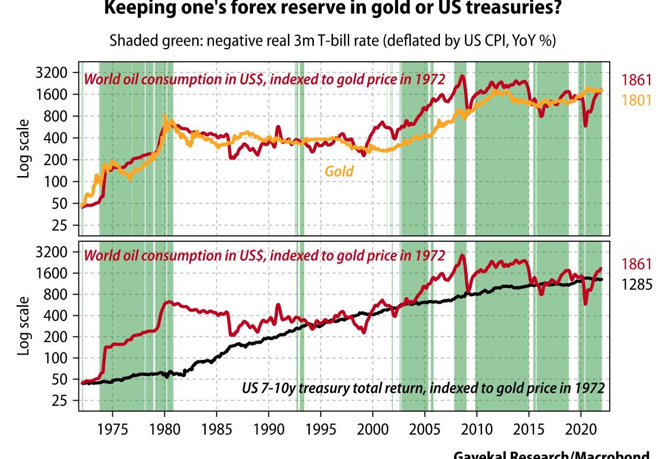 GavekalResearch的這張優秀圖表清楚地表明,黃金是比美國國債更好的能源儲存。