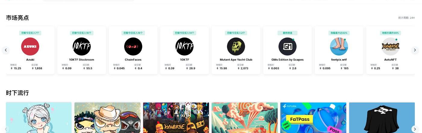 OpenSea展示的合集數量很多,維度有Notablecollections、Topcollectorbuystoday、ArtNFTspotlight,比較豐富。但沒有相應標識,用戶不知道該合集上榜的理由,難以做出交易參考。