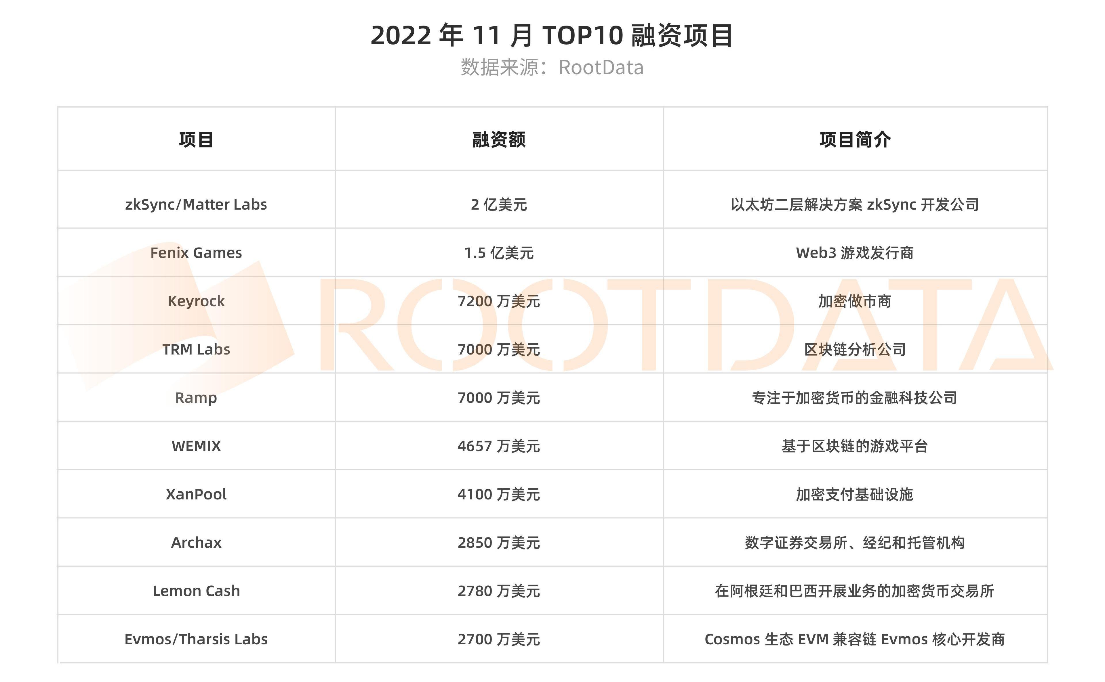 下面,本文將基于加密行業各賽道對11月投融資市場進行詳細梳理。