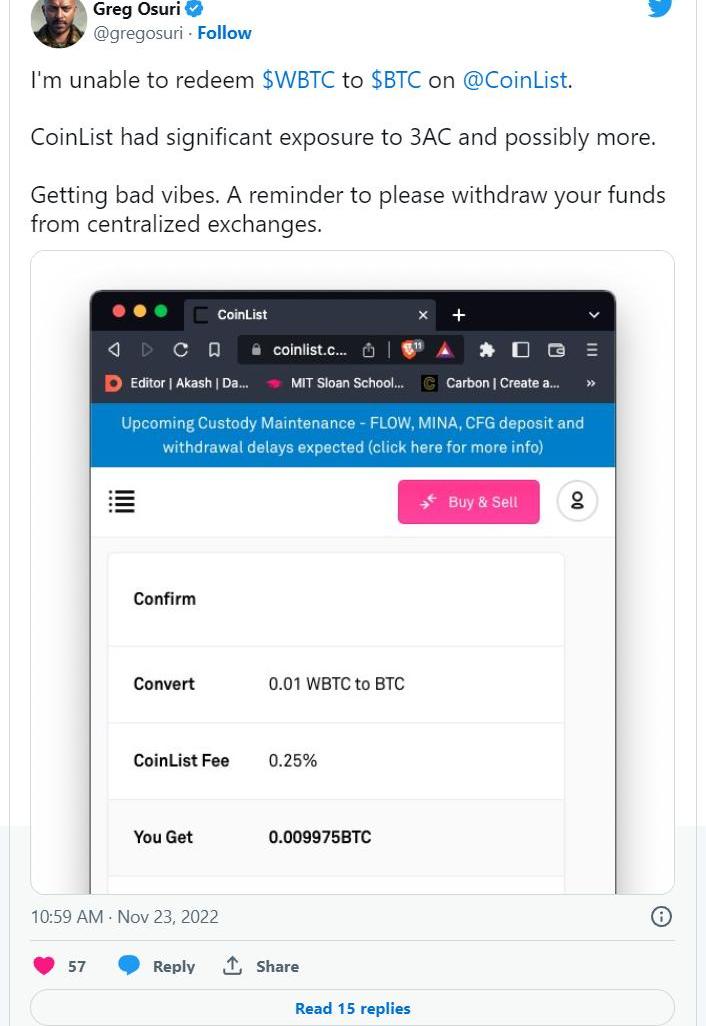 Sheriff強調的另一件事是,FTX能夠直接在自家交易所內鑄造wBTC。隨著Alameda從合作伙伴列表中被刪除,這也是令人擔憂的一件事。
