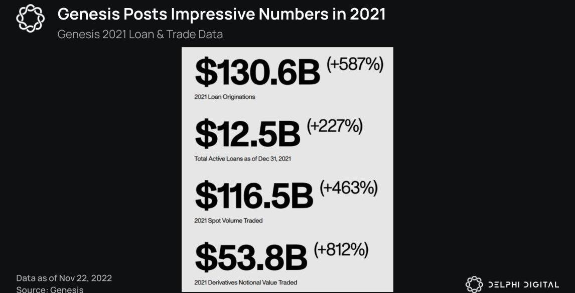 Genesis是最大的機構加密貸方,僅在2021年就發放了超過$130B的貸款。