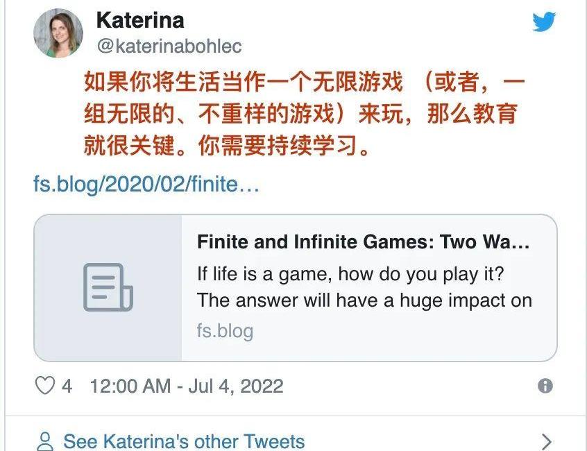你玩游戲是為了贏,還是為了能一直玩下去?有限游戲是有始終的游戲;這些是我們日常玩的游戲,目的是贏。無限游戲以游戲的持續性為目標,要求玩家邀請他人,探索可能性的邊界,必要時改變規則以便讓游戲繼續。