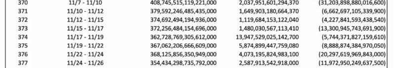 該網絡以美元計價的?DeFiTVL?從?11?月?6?日的?10?億美元下降至?2.783?億美元,降幅為?72.1%?。這是意料之中的,因為存入?DeFi?協議的許多資產都是不穩定的。因此,TVL?的下降并不一定意味著用戶正在撤出資金。