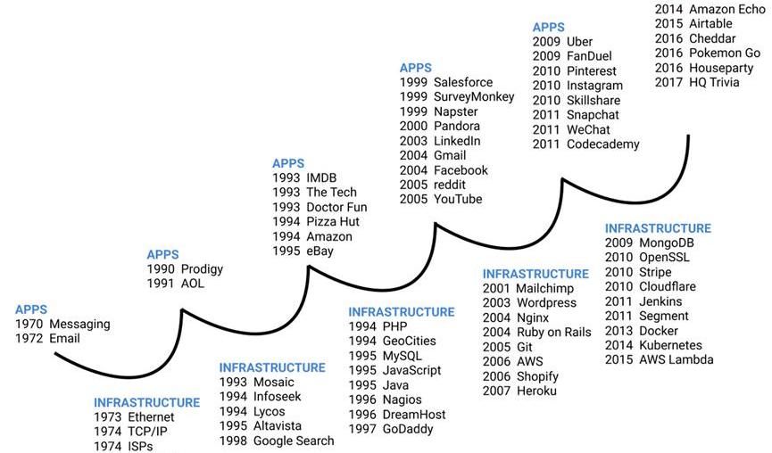 首先,應用程序激發了基礎設施。然后,該基礎設施使新的應用程序成為可能。