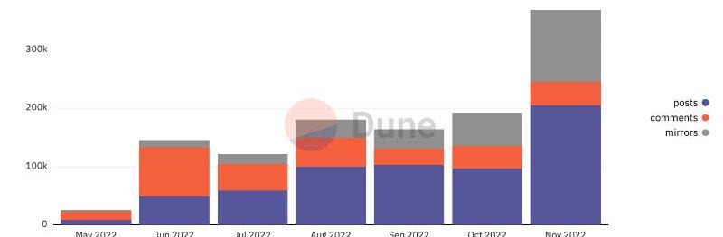 首先,每月的參與度幾乎翻了一番,在帖子、評論和鏡像方面,每月有37萬次參與。?