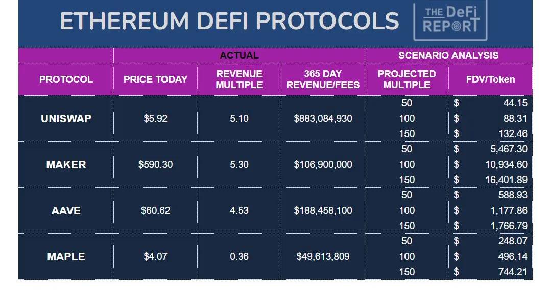 與替代的L1s相比,以太坊DeFi看起來相對被低估了。這些協議已經建立了產品/市場契合度,并且現在已經經過多次實戰檢驗。尚不清楚的是監管環境以及回饋給代幣持有者的價值累積。這仍然是非常早期的,而且加密貨幣具有風險性也是一個不言而喻的事實。換句話說,DeFi的潛在風險調整后回報可能高于當今行業的任何領域。