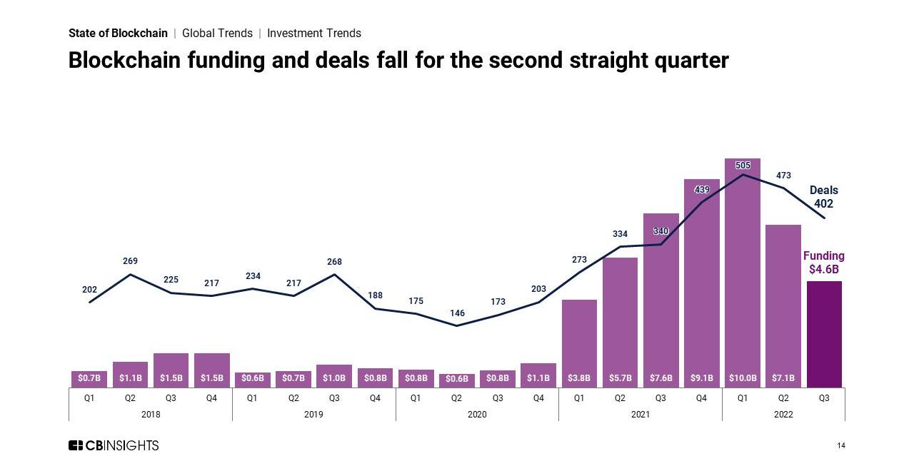 2018-2022Q3區塊鏈行業融資情況數據來源:CBinsight