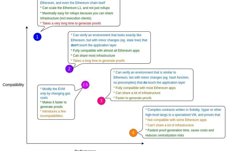 在目前這個時間點上,有四種類型的zkEVM,正是我們的三腳貓朋友Vitalik在這篇優秀的文章中描述的。