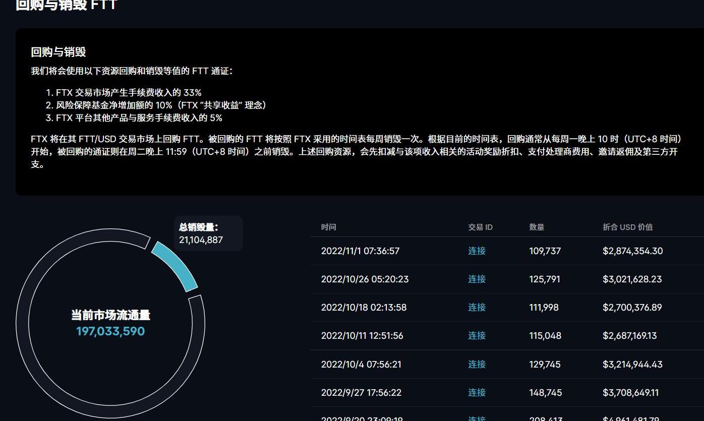 再來看手續費收入。這一點只需要看他們的FTT燒毀——FTX收入的1/3用于代幣燒毀。根據官網頁面: