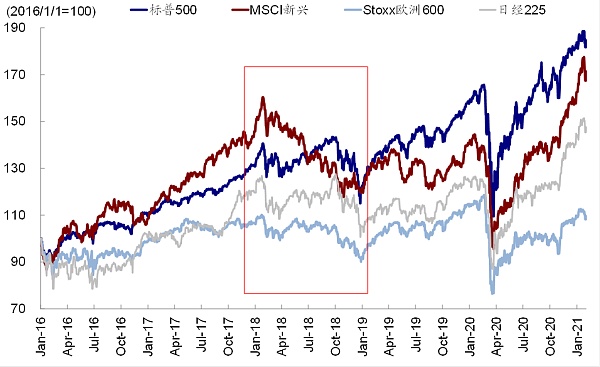 但是仍需要強調的是,拉長時間中期維度看,短期波動后,美股在基本面的支撐表依然能夠反彈并再創新高,其背后的原因就在于2017年底稅改對盈利的支撐;直到10月份利率繼續走高且增長見頂后,市場才徹底見頂。在2月~3月經歷了近2個月的盤整和波動后,美股從4月初見底反彈并再創新高,直到10月初在利率突破3%和增長見頂的雙重壓力下見頂,開啟新一輪下跌。相比當時的其他市場比如中國市場,美股之所以還能夠反彈并再創新高的根本原因在于2017年稅改帶來的對于企業盈利的額外推動,這一點其實他市場并不具備的,而當基本面的空間也被消耗殆盡后,市場便難以為繼了。