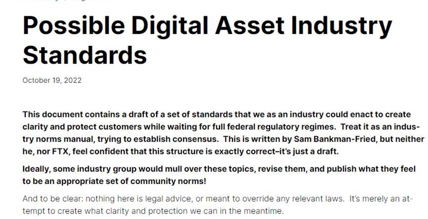 10月19日,SBF提出了一個監管框架,該框架有利于FTX的商業利益,并給公眾留下了其支持加密貨幣的印象。