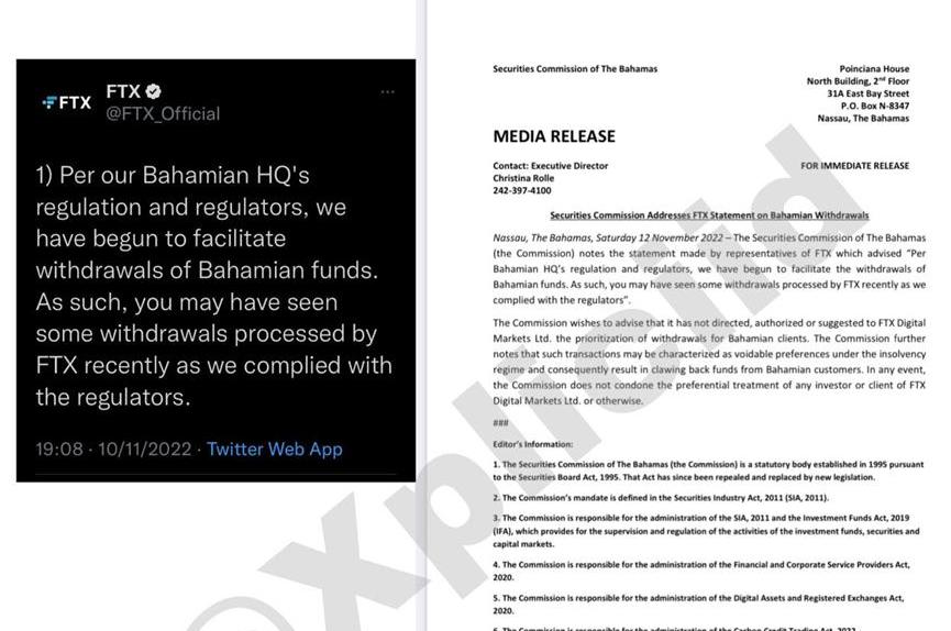 FTX聲稱這是為了遵守巴哈馬監管機構的規定。