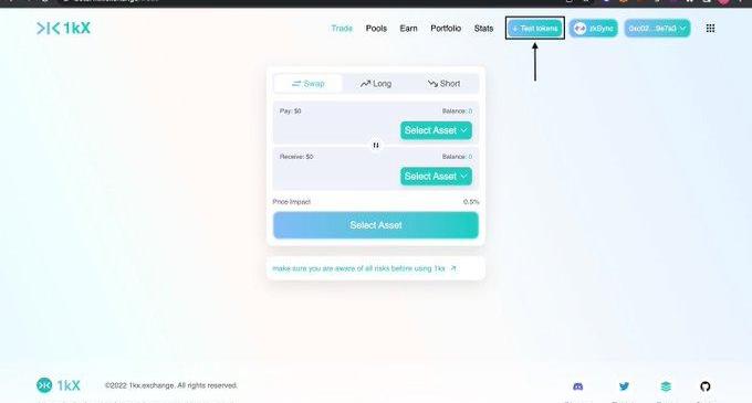 轉到http://beta.1kx.exchange/pools并單擊測試代幣
