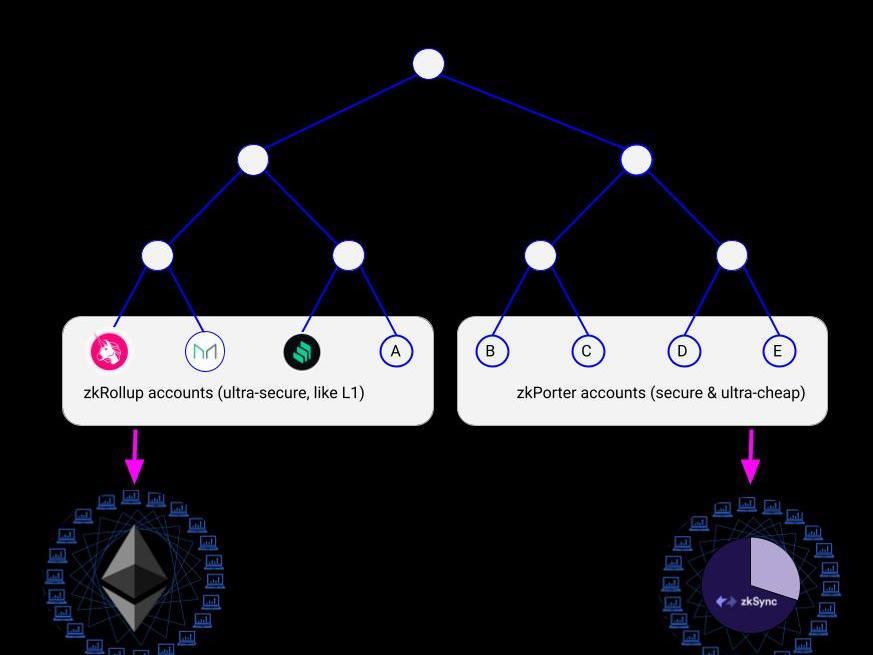 那些優先考慮吞吐量和降低交易費用而不是安全性的用戶將在zkPorter上進行他們的活動,在zkPorter上發布數據并在鏈下可用。