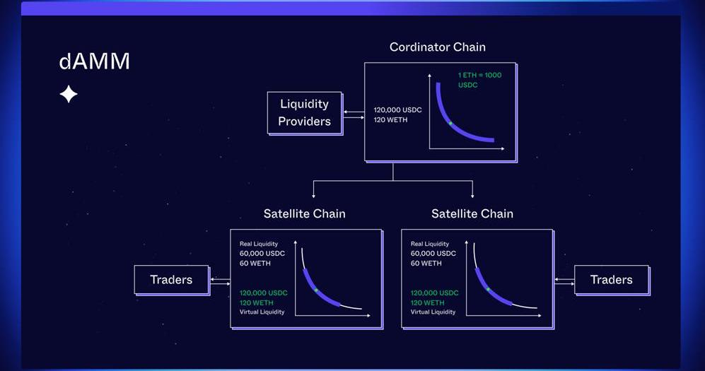 在本文中,我們提出并探索了第三種方法,使用一種新的機制來減輕流動性碎片化的影響:共享流動性AMM。使用協調的應用鏈“樞紐”、虛擬流動性池和在其他鏈上的“衛星”部署,SLAMM理論上可以優化孤立的跨鏈池的流動性。