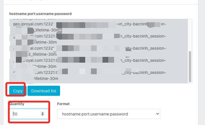 8.設置完之后,根據你想操作的賬戶的數量,生成hostname:port:username:password,這個的用戶,后面說明。比如我想操作10個以太坊擼空投地址。那我就生成10個。