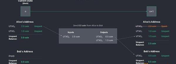網絡上的每一筆交易都精確地定義了誰從哪筆交易的輸入中獲得多少比特幣。然后,系統會驗證交易投入是否未被使用,以及發送方是否有權力發送比特幣,以及接收方是否符合接收比特幣的正確參數。因此,UTXO模型可以被認為是一個驗證系統。