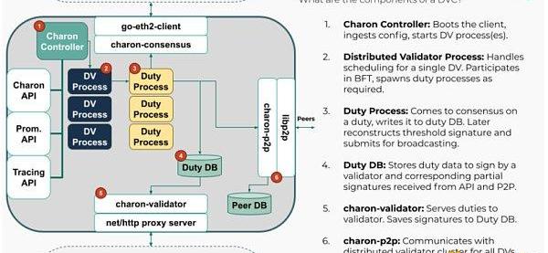 Charon:Charon是ObolNetwork的分布式驗證者客戶端,也是啟用信任最小化驗證的第一步。Charon支持容錯、高可用性驗證,使一群人能夠在多臺機器上共同運行驗證者,而不是在單個機器上運行。