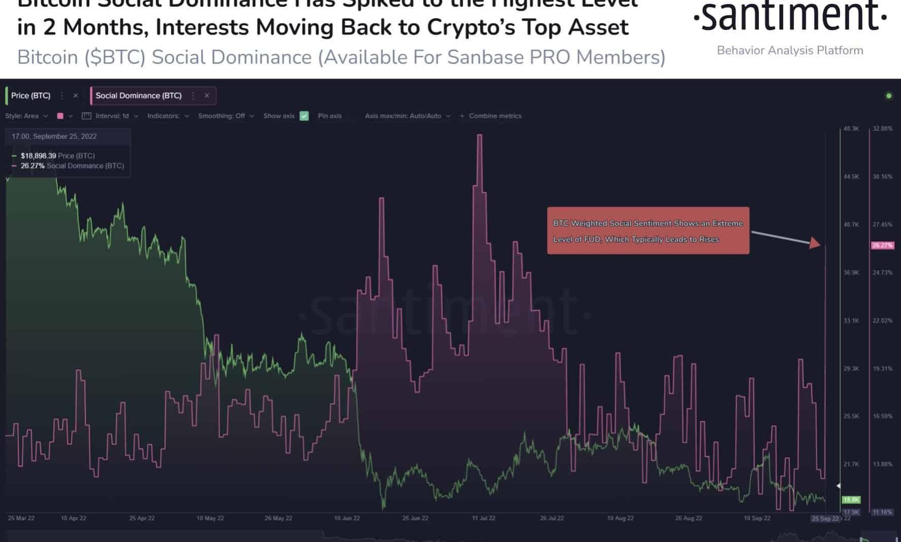 眾所周知,與比特幣一起,更廣泛的加密市場已經出現了嚴重的修正。在最近的加密貨幣市場暴跌中,山寨幣空間見證了更大的修正。結果,比特幣的社會興趣達到了兩個月以來的新高。正如鏈上數據提供商Santiment報告的那樣: