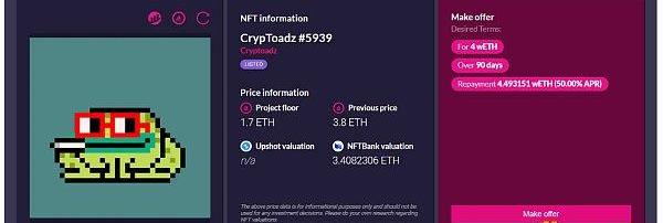 換句話說,該項目允許借款人提出預期的NFT貸款參數,然后加密貨幣貸款人可以選擇在個人對個人的基礎上接受這些條款。