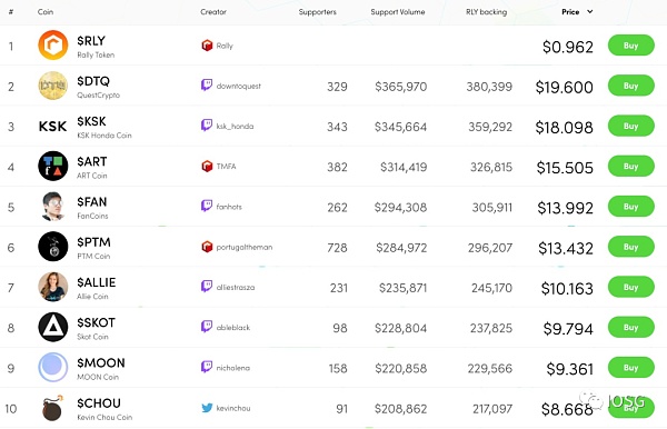 Rally平臺代幣排行