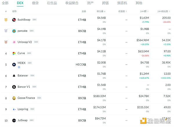 過去24小時去中心化交易所的交易量數據來源:Debank