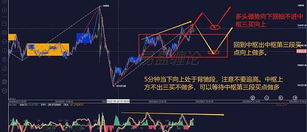 短線5分鐘圖機會如圖,當下上漲處于背馳段,黃色走勢概率大一些,回調進入中樞中樞第三段買點介入多單。注意三類買賣點出現順勢而為!