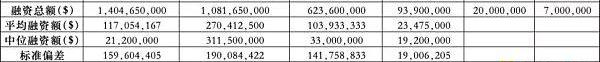 Beta市場特性是市場驅動融資。Beta衡量市場對某行業/技術類別整體是否看好。具有Beta屬性的賽道融資普遍不錯。統計上的離散系數越低,表示賽道融資離散度低,進而體現市場有beta屬性。我們進一步用平均數和中位數做差來交叉對比驗證。CV較低且average和median的差距不大的市場更體現beta特性。我們用CV<1.5和log(average)/log(median)<1.05判斷。