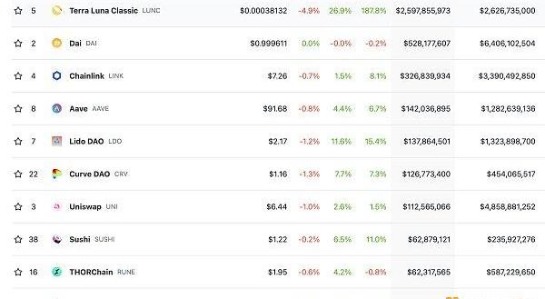 過去24小時去中心化交易所的交易量數據來源:coingecko