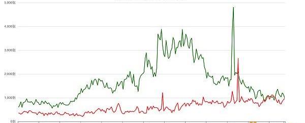 散戶多頭頭寸自?1141?下降至?996,空頭頭寸自?906?上升至?965,散戶在最新統計周期內又一次進行了清晰的凈空調倉,行情下跌的背景下并不令人意外。