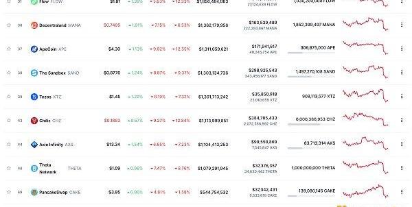 NFT總市值、市值排名前十項目數據來源:Coinmarketcap